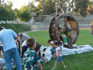 We had our Pioneer Day celebration last night at the stake center. There were booths set up with guns from the 1800's or earlier, music from that era, doll making, blacksmith, panning for gold, and some posters exhibits. Dinner was good, with pulled pork burgers, corn on the cob, cole slaw, and beans, with pies for dessert. We had a fun time and saw many friends. We sat with the Denkers who brought Melanie's sweeties. We brought Amy's sweetie, Haylee. They were home with Chloe who was running a nice fever! Haylee made a doll for Chloe and herself. When we took it to her, she was so happy. Her fever had broke and she was smiling and it was so good to see her happy again.